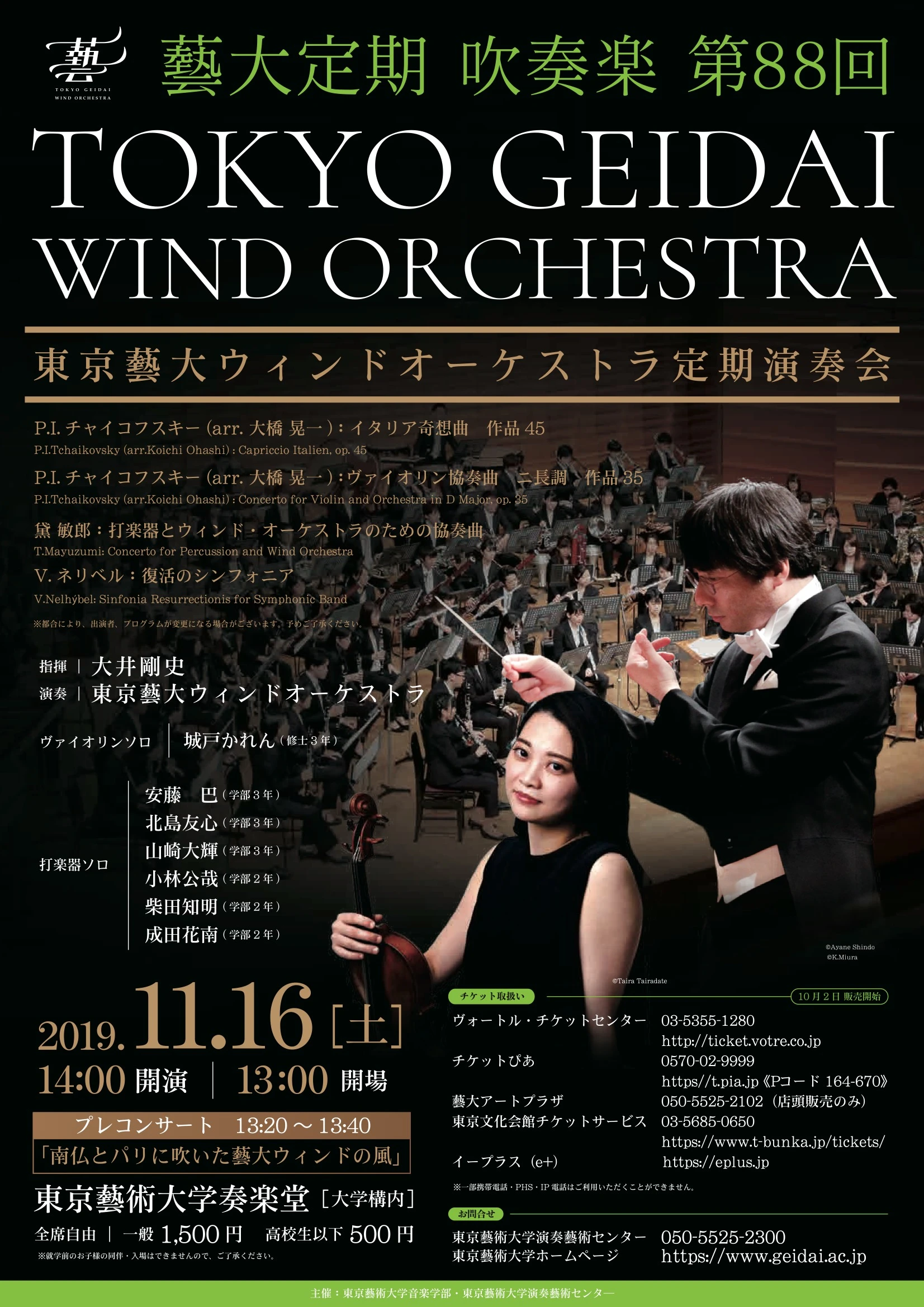 演奏会概要 演奏会名:モーニング・コンサート 第1回 日時:2011年 5月 12日(木)11:00 会場:東京藝術大学奏楽堂 W. ウォルトン/ヴィオラ協奏曲 ヴィオラ:伊藤 慧 S. プロコフィエフ/ピアノ協奏曲 第2番 ト短調 Op.16 ピアノ:濵野 与志男 指 揮:山田 和樹 管弦楽:藝大フィルハーモニア(東京藝術大学管弦楽研究部) Related Posts 視聴 「音楽の至宝」Vol.I 第2日 ショパンの夕べ エヴァ・ポブウォッカ先生を迎えて2013-07-08 視聴 吹奏楽 第88回 東京藝大ウィンドオーケストラ定期演奏会2019-11-16 視聴 2013年度 モーニング・コンサート 第1回2013-04-25 視聴 第69回 藝大オペラ定期公演「コシ・ファン・トゥッテ」 第1日2023-10-07 視聴 モーニング・コンサート 第13回2020-02-20