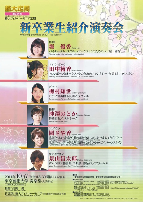 演奏会名:藝大定期 第344回 藝大フィルハーモニア定期 新卒業生紹介演奏会