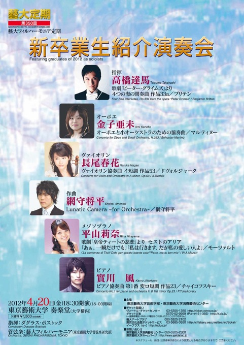 演奏会名:藝大定期第350回 藝大フィルハーモニア定期 新卒業生紹介演奏会