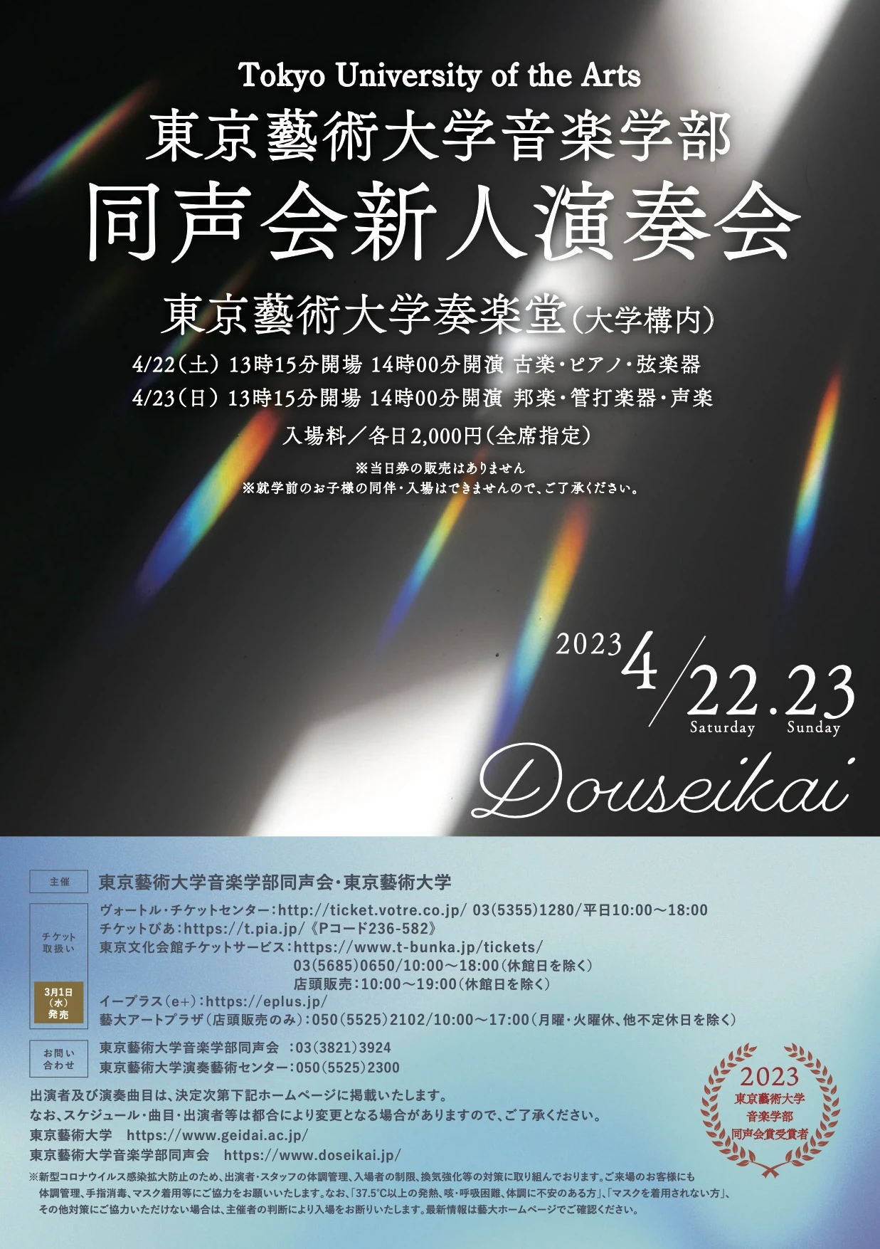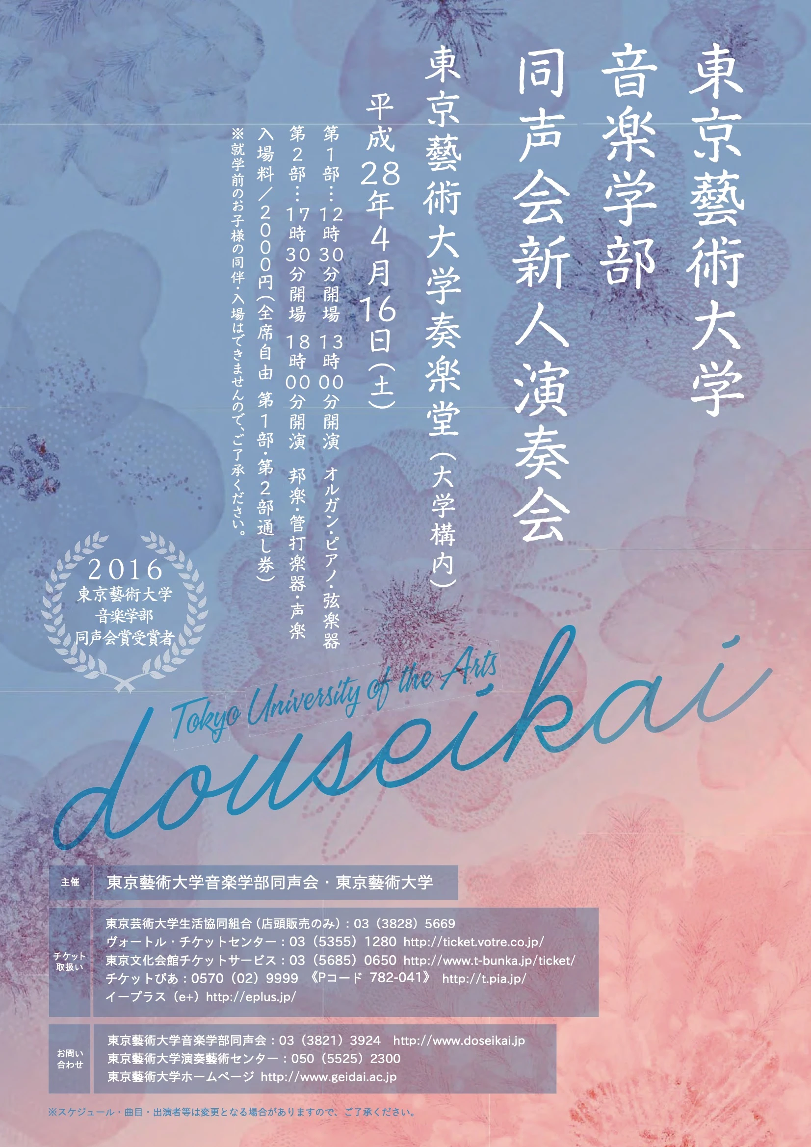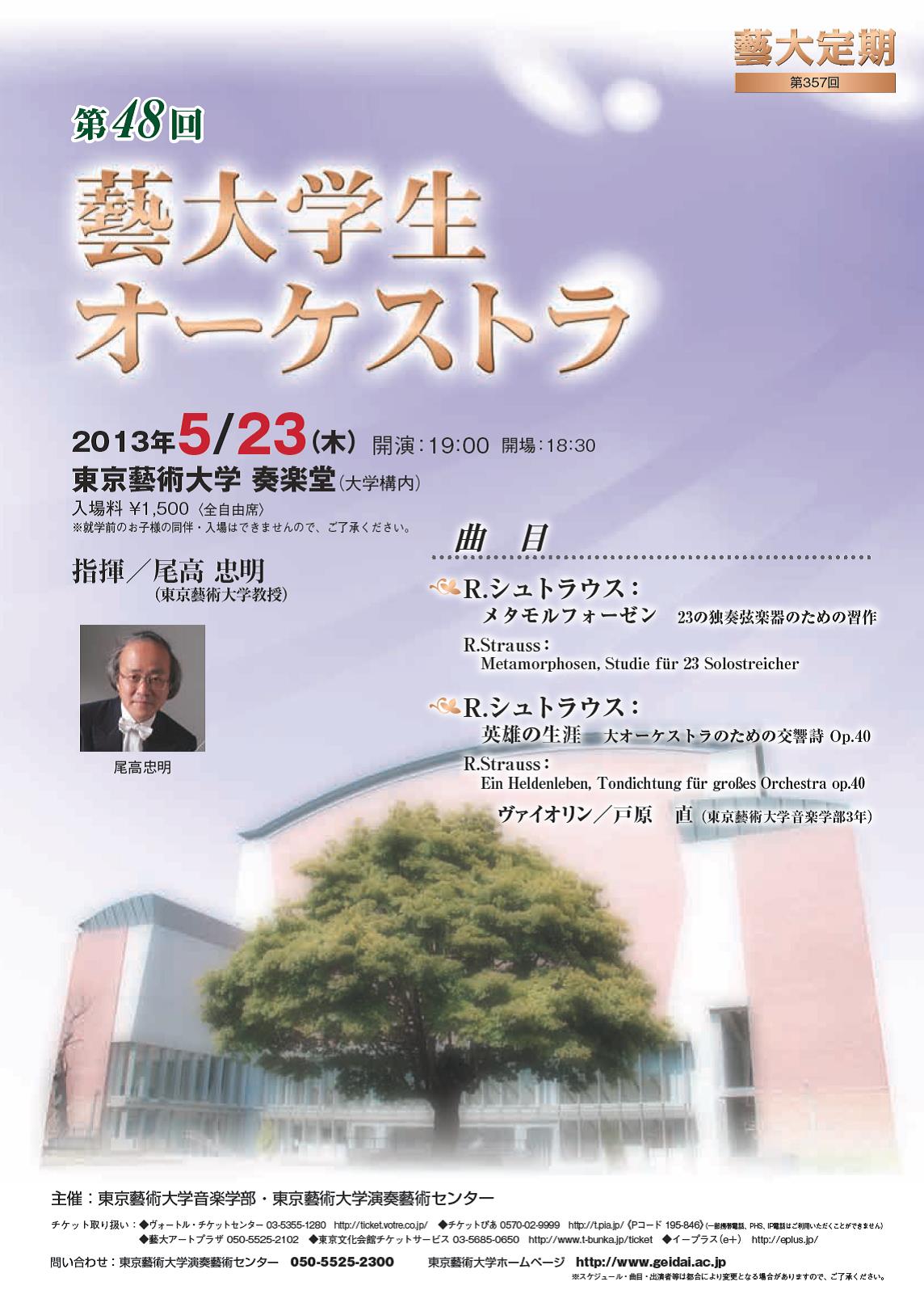 演奏会概要 演奏会名:藝大定期 第48回藝大学生オーケストラ 日時:2013年 5月 23日 (木)19:00 会場:東京藝術大学奏楽堂 主催:東京藝術大学音楽学部・東京藝術大学演奏藝術センター 指 揮:尾高 忠明 ヴァイオリン:戸原 直 管弦楽:東京藝大シンフォニーオーケストラ 録画:竹岡 智行 録音:岩崎 真 Related Posts 視聴 2013年度 モーニング・コンサート 第2回2013-05-09 視聴 即興への誘ない〜ワークショップ2016-12-22 視聴 東京藝術大学音楽学部 同声会新人演奏会 古楽・ピアノ・弦楽器2023-04-22 視聴 室内楽 第39回 【第1日】2013-02-02 視聴 同声会新人演奏会 第2部 邦楽・管打楽器・声楽2016-04-16