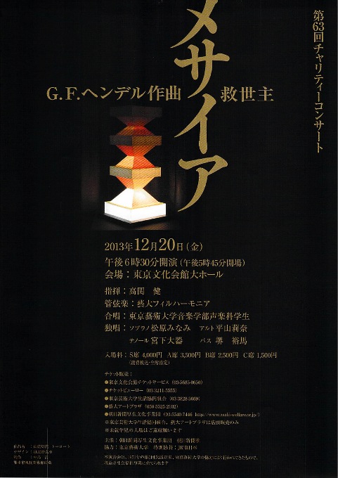 演奏会名:第63回チャリティー・コンサート メサイア