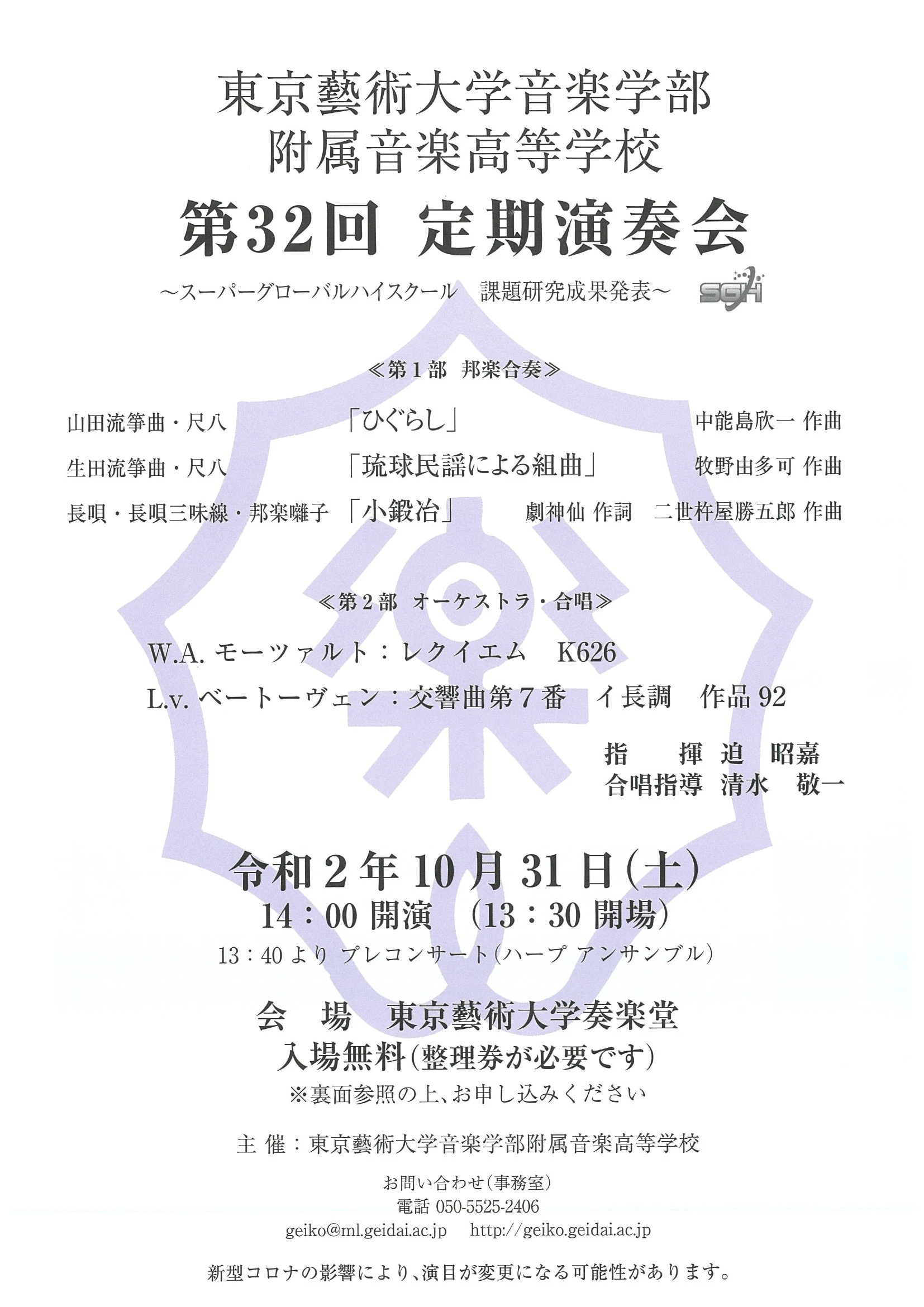演奏会概要 演奏会名:廣瀬 麻名 博士学位審査演奏会 専攻:ヴァイオリン 日時:2014年 2月 20日 (木) 18:30 会場:東京藝術大学奏楽堂 ピアノ:新居 由佳理 チェロ:朝吹元 Related Posts 視聴 音楽学部附属音楽高等学校 第32回定期演奏会2020-10-31 視聴 モーニング・コンサート 第8回2021-03-18 視聴 舞・飛天遊2017-11-22 視聴 藝大フィルハーモニア定期演奏会 生誕150年 オール・R.シュトラウス・プログラム2014-10-24 遠藤 亜希子 博士学位審査演奏会2017-02-04