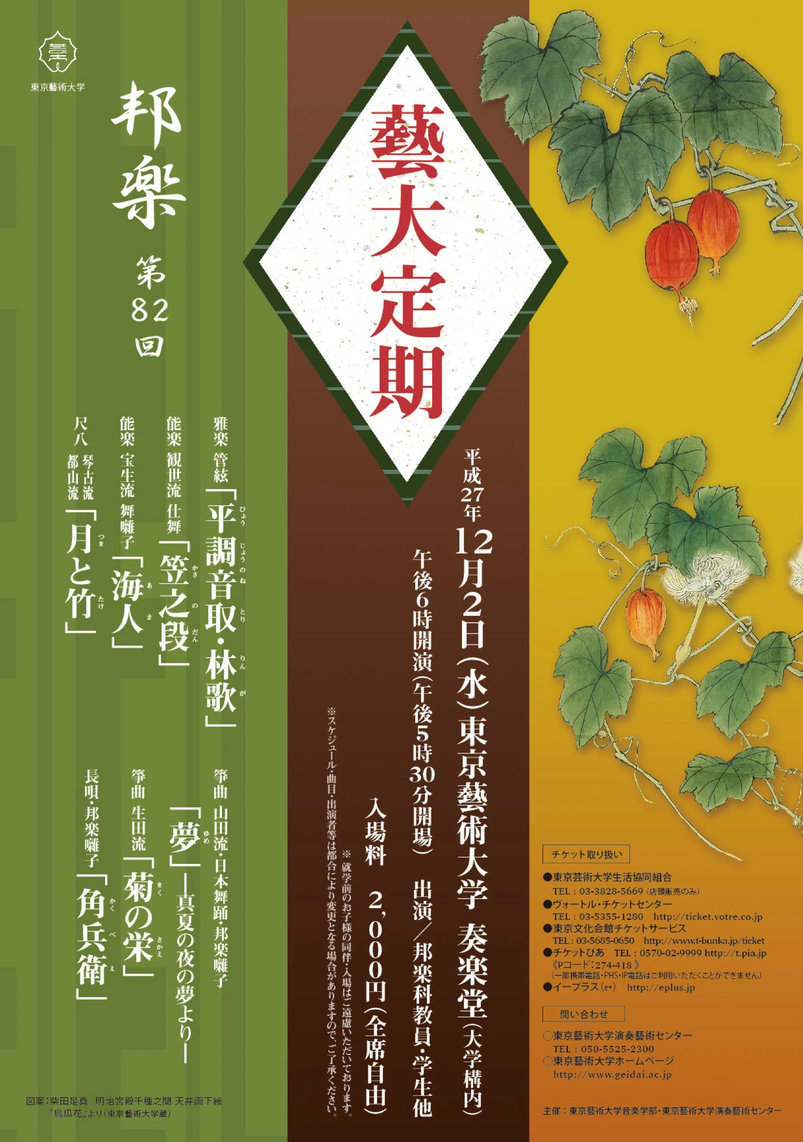 演奏会概要 演奏会名:東京藝大チェンバーオーケストラ第23回定期演奏会 日時:2014年 6月 21日 (土)15:00 会場:東京藝術大学奏楽堂 主催:東京藝術大学音楽学部・東京藝術大学演奏藝術センター エルガー:序奏とアレグロ 作品47 オネゲル:交響曲第2番 ワーグナー:ジークフリート牧歌 モーツァルト:交響曲第41番 ハ長調 K. 551 指 揮:尾高 忠明 管弦楽:東京藝大チェンバーオーケストラ 録画:田川 めぐみ 録音:岩崎 真 Related Posts 視聴 藝大定期 邦楽 第八十二回 定期演奏会2015-12-02 視聴 第46回 藝大学生オーケストラ2012-05-24 視聴 第13回「奏楽堂企画学内公募」最優秀企画 「音のいろ、音のかたち ~現代音楽はスペクタクルの夢をみるか~」2019-03-29 視聴 イタリア・オペラ “ベル・カント”の至宝2018-11-10 視聴 「コジ・ファン・トゥッテ(女はみんなこうしたもの)」全二幕 【第2日】2011-10-02
