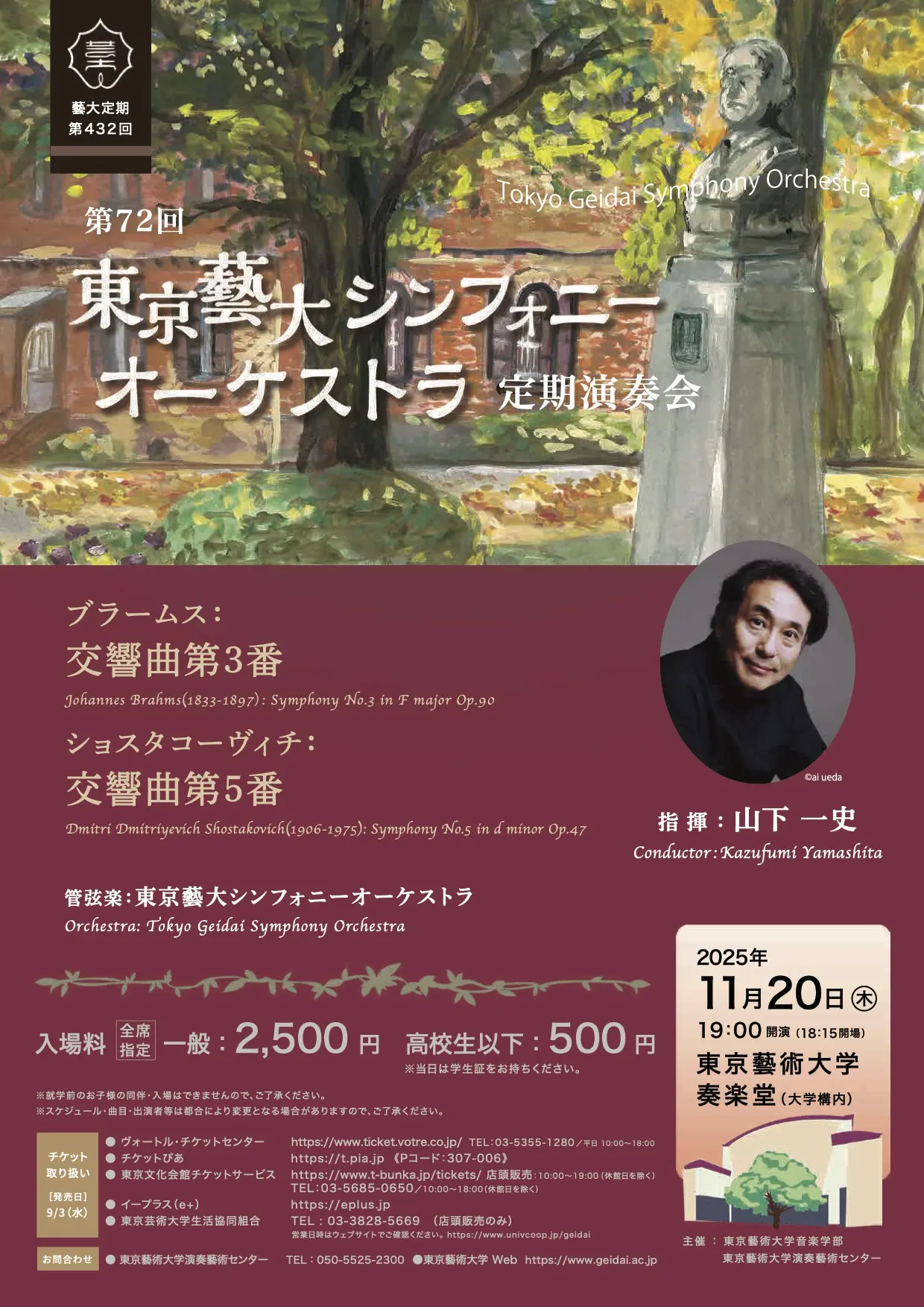 演奏会概要 演奏会名:モーニング・コンサート 第11回 日時:2014年 11月 13日(木)11:00 会場:東京藝術大学奏楽堂 C. ライネッケ/フルート協奏曲 フルート:大久保 祐奈 J. シベリウス/ヴァイオリン協奏曲 ニ短調 作品47 ヴァイオリン:髙橋 奈緒 指 揮:山下 一史 管弦楽:藝大フィルハーモニア(東京藝術大学管弦楽研究部) Related Posts 視聴 東京藝大シンフォニーオーケストラ 第72回 定期演奏会2025-11-20 視聴 モーリス・ブルグ(Oboe)を迎えて ~フランスのエスプリ―生誕350年のクープランと生誕200年のグノーを中心に~2018-05-25 視聴 第69回 藝大オペラ定期公演「コシ・ファン・トゥッテ」 第1日2023-10-07 視聴 鏑木 陽子 博士学位審査演奏会2010-01-29 視聴 JAZZ in 藝大 20252025-09-13